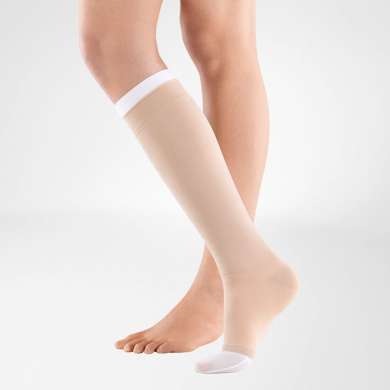 Športna kompresija temelji na zdravstvenih standardih: stalna kompresija se zmanjšuje od gležnja proti mečnemu delu. Pomaga ublažiti stres med športno aktivnostjo. Zaradi boljše podpore mišicam, so le-te sposobne daljše obremenitve. Športniki, ki se ukvarjajo z vzdržljivostnimi športi, občutijo ta pozitivni učinek.