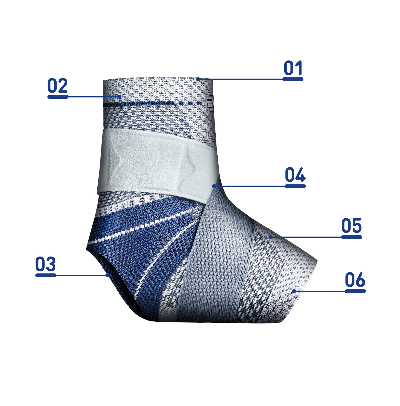 deluje kot funkcionalna bandaža s trakom, stabilizira gleženj, preprečuje supinacijo, s pomočjo povitega traku v obliki števila 8, nudi povezanost narta in spodnjega dela noge - 05 Zračno Train aktivno tkanje