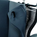 - Hrbtni naslon in sedež sta prekrita s semi elastično plastično gumo, ki je zračna in preprosta za čiščenje. Material onemogoča zdrs uporabnika. Preprečuje nastanek preležanin uporabnikom, ki večji del ali cel dan preživijo v ležečem položaju ali pol sedečem položaju.